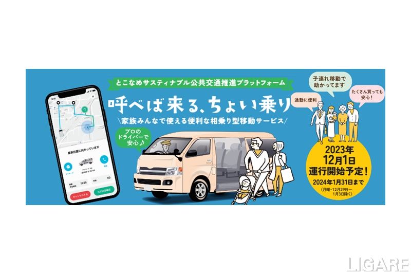 WILLER株式会社(以下、WILLER)は11月20日、同社らが参画するサスティナブル公共交通推進プラットフォームが、愛知県常滑市(以下、常滑市)でAIオンデマンド交通サービスを12月1日に運行開始すると発表した。