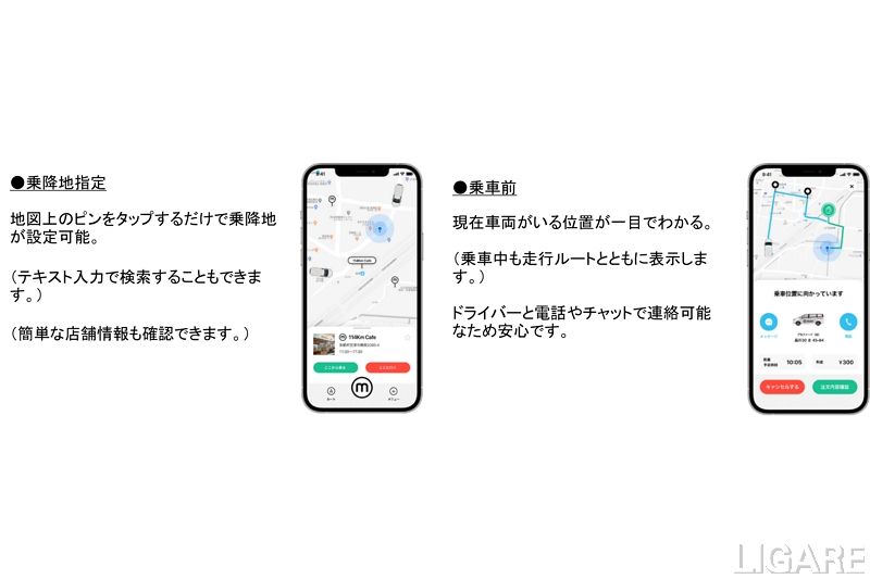 AIルーティングにより、ユーザーの予約状況や道路状況を考慮して、最適なルートで相乗りしながら目的地まで移動できる。運転は、固定した数名のプロのドライバーが担当する。