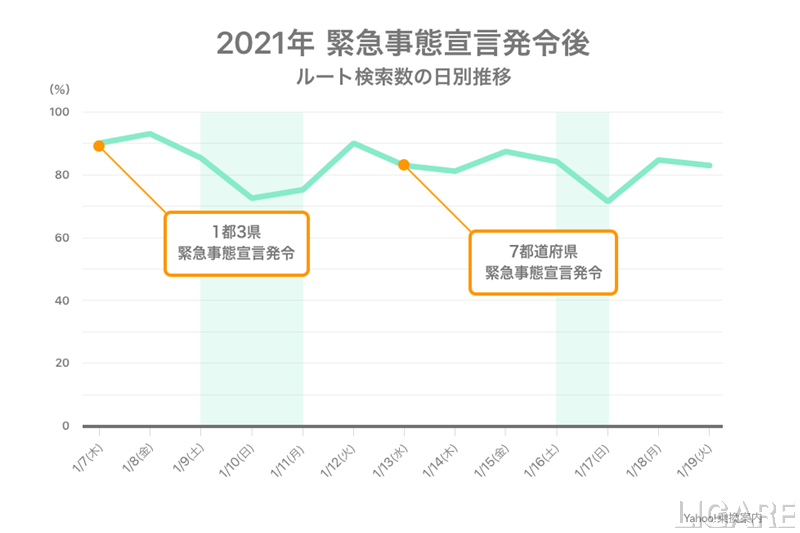 Yahoo!乗換案内、緊急事態宣言前後の利用動向を発表 12月より下回るも高水準