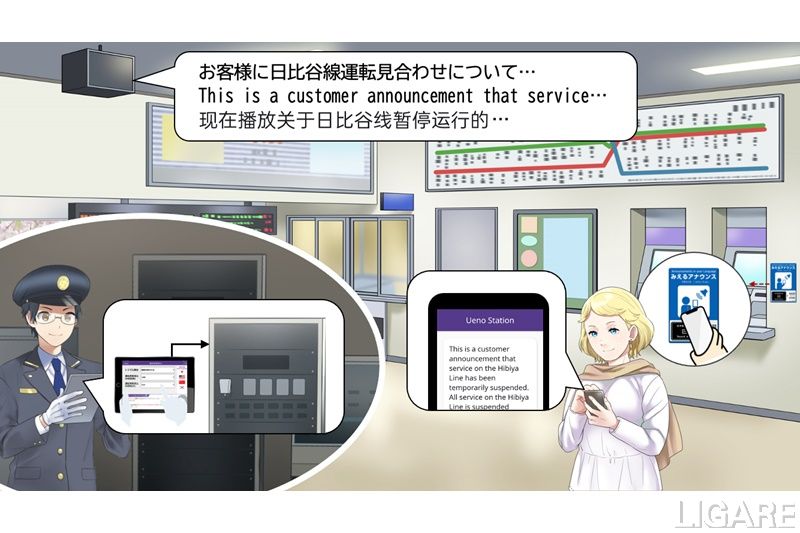 今回の取り組みの目的は、聴覚障がい者や増加する訪日外国人旅行者など多様なユーザーへの情報提供の充実を図ることだ。東京メトロは、業務用タブレット端末に「おもてなしガイド for Biz」アプリを導入し、駅構内での4言語(日・英・中・韓)のアナウンスに活用する。