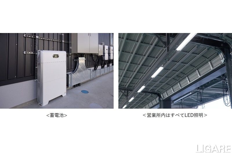 八幡営業所は、全国で初めて、全車両EVで稼働する営業所だ。太陽光発電設備と蓄電池を導入し、日中発電した電力で、EV充電や建屋電力の一部※を賄うという。また、電力平準化システムにより、夜間のEV一斉充電による電力使用ピークの偏りを緩和するなど、エネルギーマネジメントを行うことで、サステナブルな物流を実現する。
