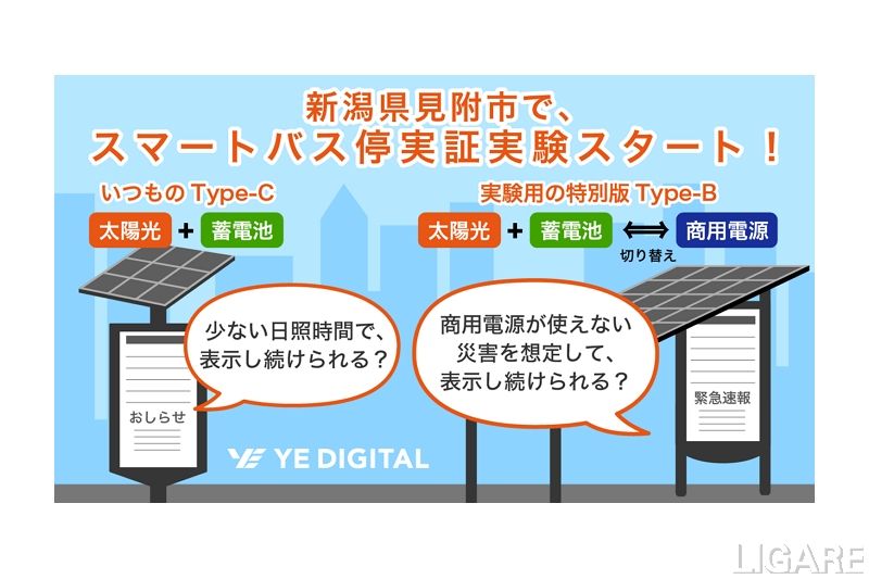株式会社YE DIGITAL(以下、YEデジタル)は、ランドブレイン株式会社(以下、ランドブレイン)と連携し、スマートバス停を用いた「太陽光発電設備+蓄電池」を電源とする災害に強いバス停の実証実験を12月1日から開始した。12月8日付のプレスリリースで明かしている。