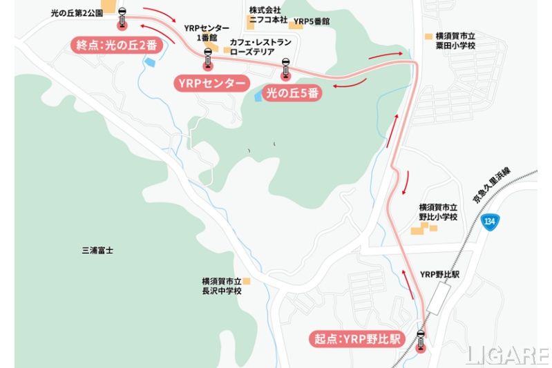 なお、同実証は、YRP野比駅と横須賀リサーチパーク(光の丘2番)を結ぶ約3kmの区間で2025年12月1日~2026年2月1日に実施する。使用する車両は、大型バス(自動運転車両向けに改造した京浜急行バス保有のいすゞ・エルガ)1台の予定だ。