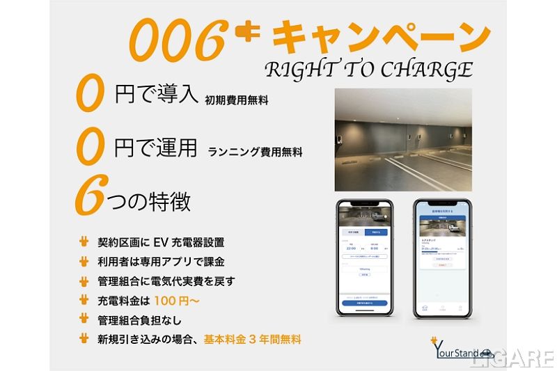 ユアスタンド株式会社(以下、ユアスタンド)は、管理組合が0円で導入可能な006キャンペーンを開始した。3月16日付のプレスリリースで明かしている。