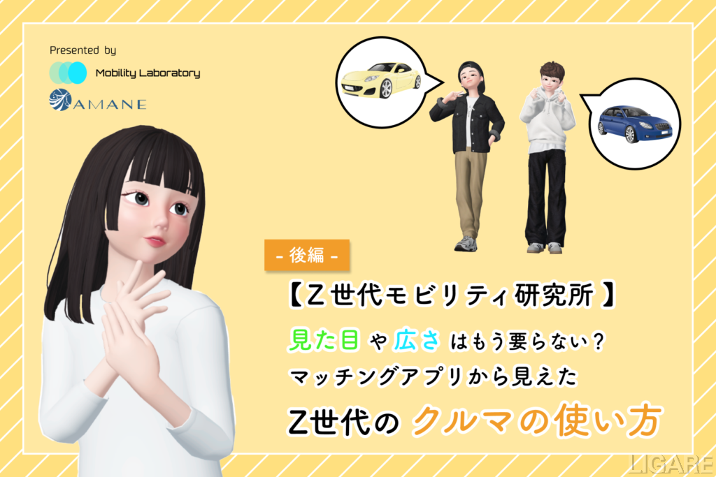 本記事は、「【Z世代モビリティ研究所】見た目や広さはもう要らない?マッチングアプリから見えたZ世代のクルマの使い方」の後編になります!