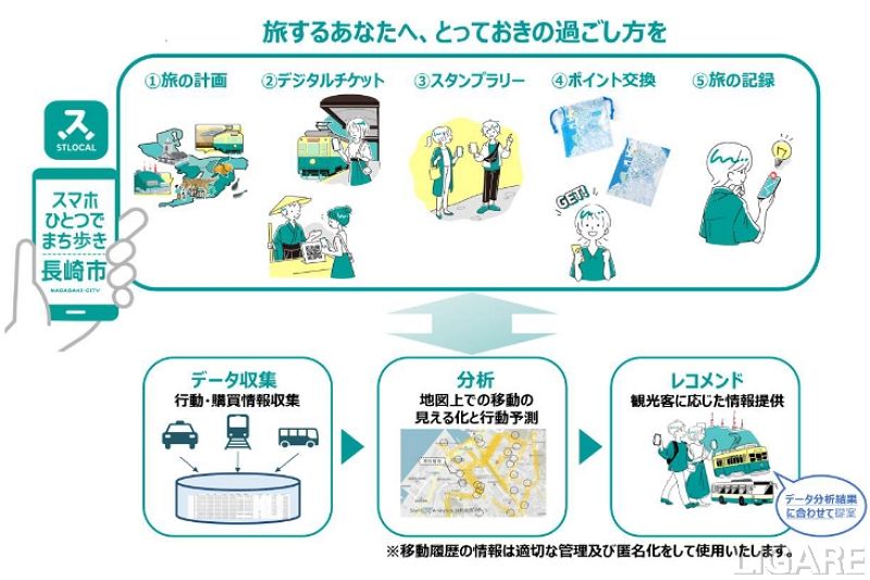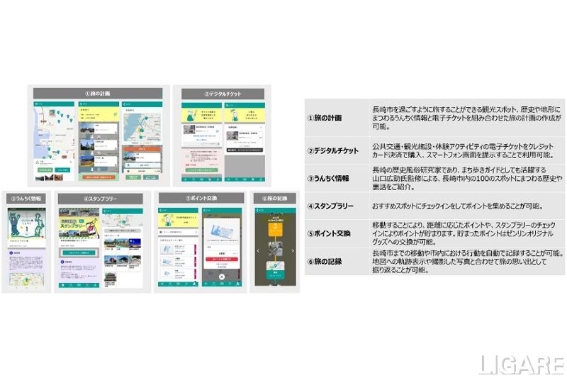 また、「STLOCAL」は、長崎市の中心地から郊外までの「とっておきの過ごし方」コンテンツや、交通機関および観光施設等のチケットが購入・利用できるサービスを提供する。サービスの利用に応じて付与されるポイントと商品の交換や移動履歴の管理が可能だ。