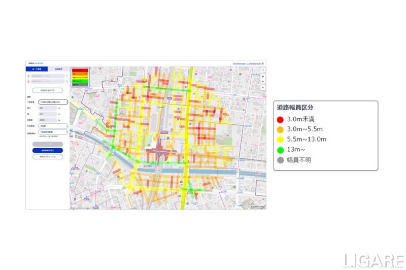 ゼンリンデータコムは11月11日、同社提供サービス「Area Marker(エリアマーカー)」に道路幅可視化機能および大型車ルート検索機能追加を発表した。