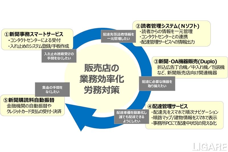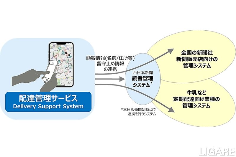 一方、西日本新聞プロダクツは、配達管理サービスを含む業務効率化のソリューションを提供することにより、販売店が本来行いたい地域貢献などへ取り組む環境を支援すると述べている。。
