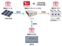 ダイハツ工業(以下、ダイハツ)、豊田中央研究所(以下、豊田中研)、トヨタ自動車九州(以下、トヨタ九州)は10月7日、トヨタ九州・小倉工場において、再生可能エネルギー(以下、再エネ)を活用したマイクログリッドシステムの実証実験開始を発表した。