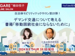 【自治体モビリティテックサロン】大分市の三ヶ尻氏、トヨタ九州の植野氏、国際経済研究所の宮代氏が登場「大分市の住宅団地の移動支援に関する実証実験結果について」2024年5月9日(木)開催