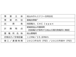 四国電力株式会社(以下、四国電力)およびCHC Japan株式会社(以下、CHC Japan)は6月14日、愛媛県松山市における蓄電池事業の実施に向けた事業会社「松山みかんエナジー合同会社」を共同で設立した。