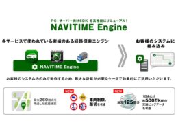 ナビタイムジャパンは26日、法人向け開発キット「NAVITIME SDK」のPC・サーバー向け経路探索エンジンを、NAVITIME Engineとしてリニューアルした。新たに地域区分別・時間帯別の道路走行速度や、車両・車幅を考慮したルート検索、開かずの踏切を考慮したルート検索に対応する。
