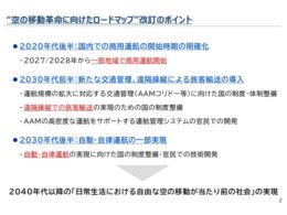国土交通省は3月27日、経済産業省と合同で開催した官民の関係者による「空の移動革命に向けた官民協議会」の第12回会合で実施した空の移動革命に向けたロードマップ改訂を発表した。また、併せて、Osaka Metro、白銀技研、JR東日本の3社が、協議会の構成員として新たに加入することも発表されている。