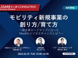 JTBコミュニケーションデザイン・AMANE・リブ・コンサルティングが登壇「モビリティ新規事業の創り方/育て方 ~脱炭素ロードマップに沿ったMaaSのビジネスチャンスとは?~」2月15日(火)開催