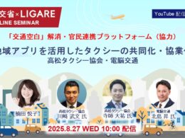 【自治体モビリティテックセミナー】国土交通省×LIGARE「交通空白」解消・官民連携プラットフォーム(協力) 「地域アプリを活用したタクシーの共同化・協業化」 2025年8月27日(水)開催